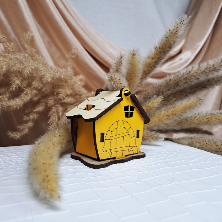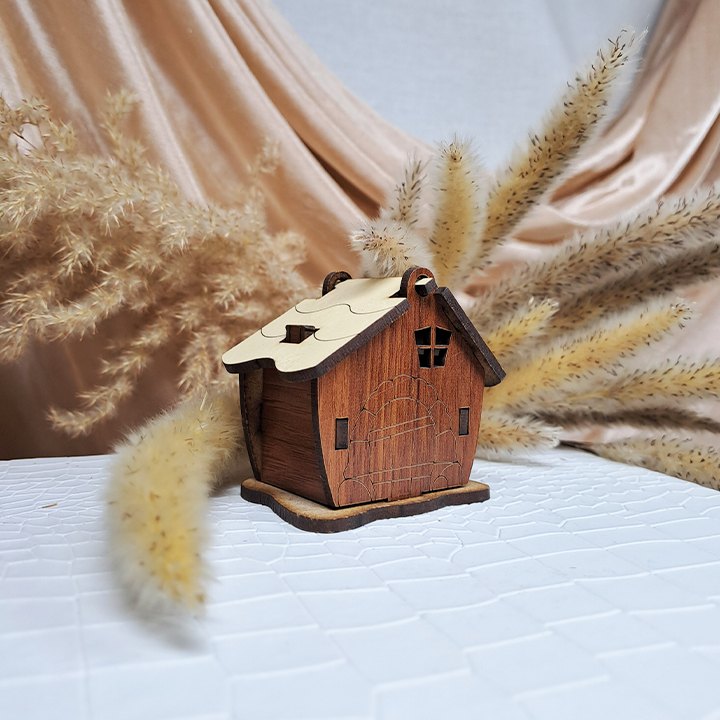 تراش چوبی فانتزی طرح کلبه مخزن دار است که به راحتی درب آن باز و بسته می شود.
