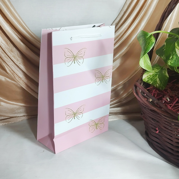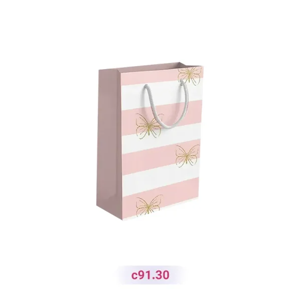 پاکت کادو با طرح پروانه طلایی سفید صورتی (سری ۳۰)