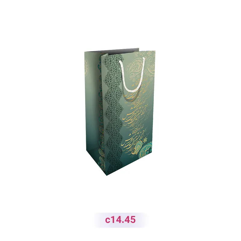 بگ هدیه طرح خطاطی فارسی (سری 45) با رنگ سبز و سایز 14*20*36 سانتیمتر، جزو دستههای پاکت هدیه و پاکت هدیه سبز است. این پاکت کادو گلاسه آماده، مناسب استفاده برای ست لباس، جعبه شکلات، گلدان است و شما میتوانید آن را بصورت تک و عمده سفارش دهید. بدیهی است که در سفارشات عمده، تخفیفهای ویژهای در نظر گرفته میشود. برا ی ثبت سفارش عمده، میتوانید به صفحه سفارش خرید عمده پاکت کادو مراجعه کنید.