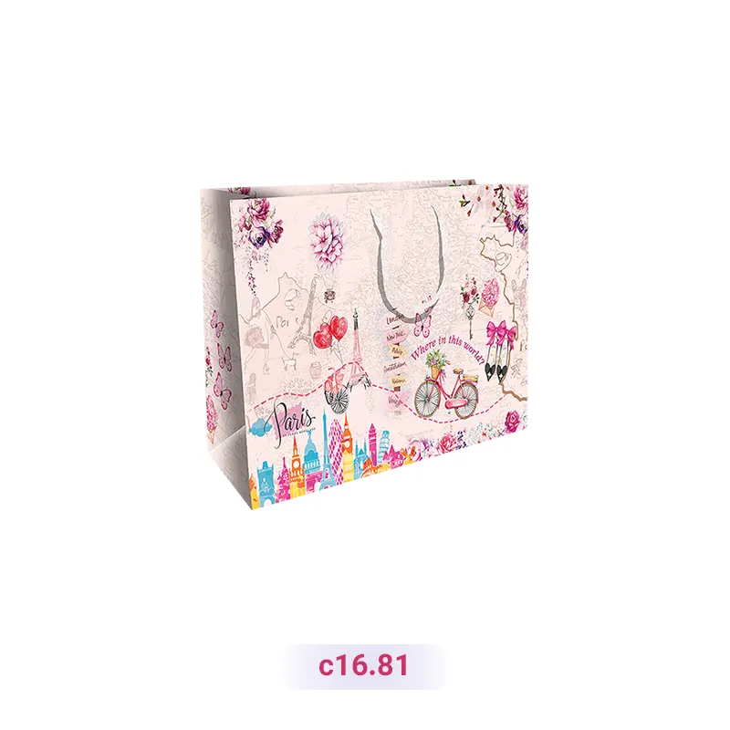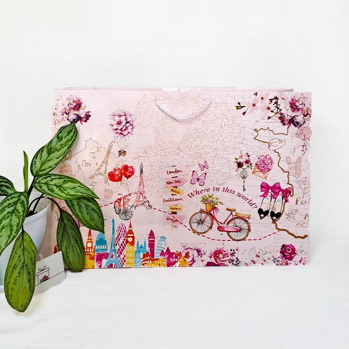 پاکت کادو با طرح دوچرخه پاریس فانتزی صورتی (سری ۸۱)