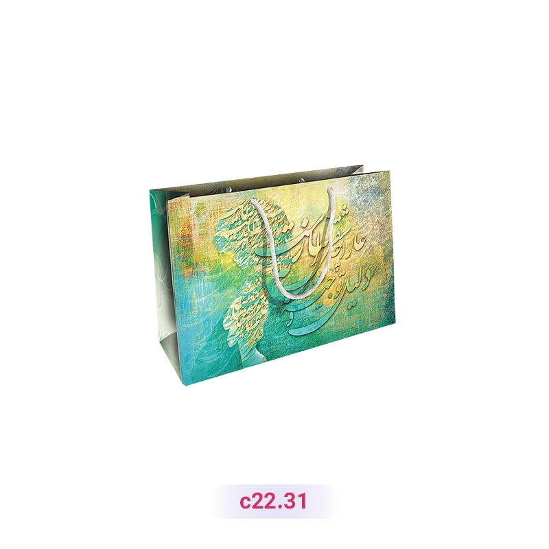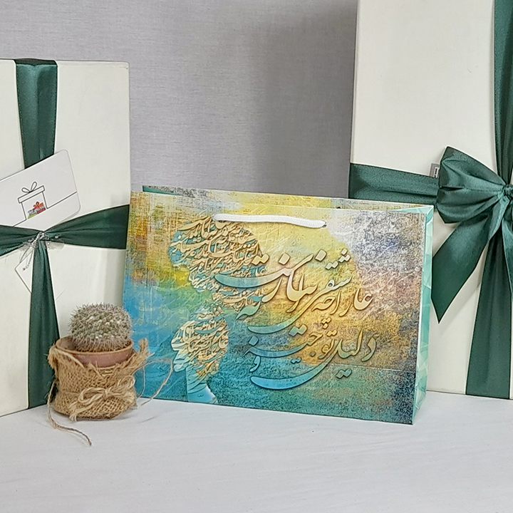 پاکت کادو با طرح خطاطی فارسی فیروزه ای (سری ۳۱)