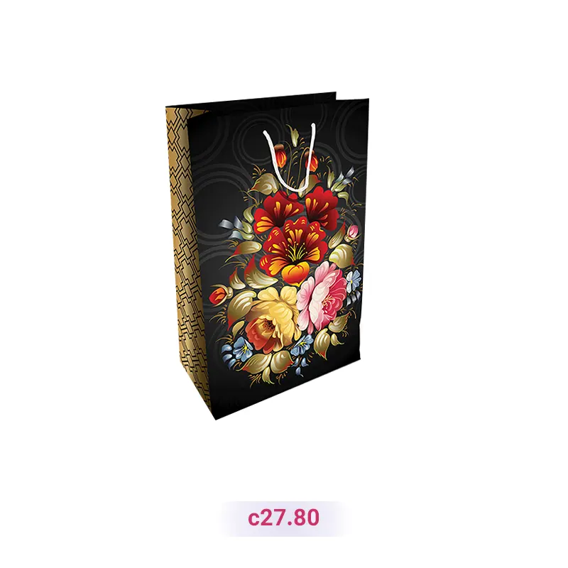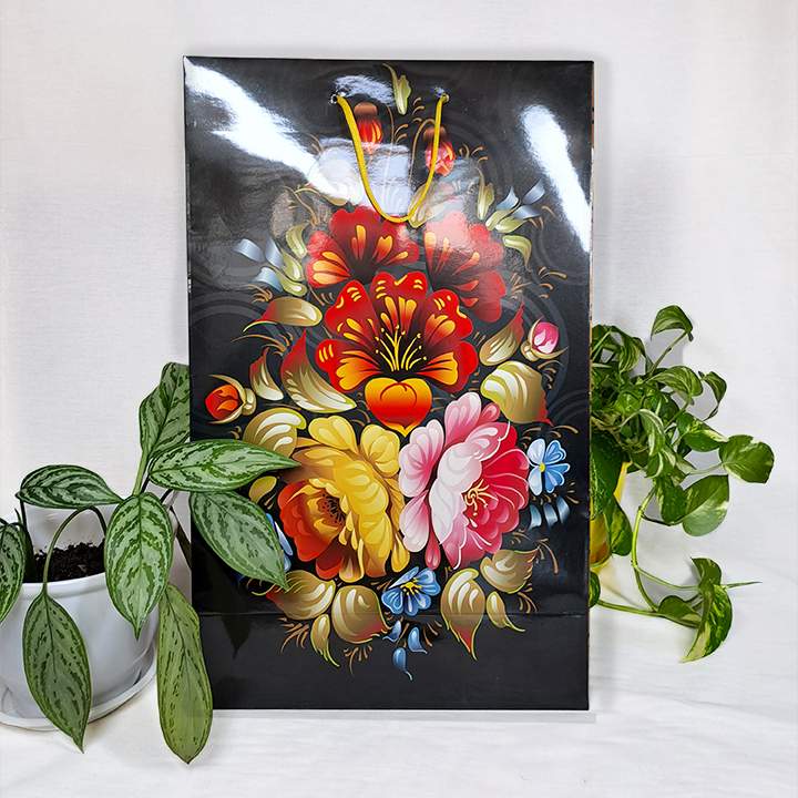 پاکت کادو با طرح گل رنگی مشکی (سری ۸۰)