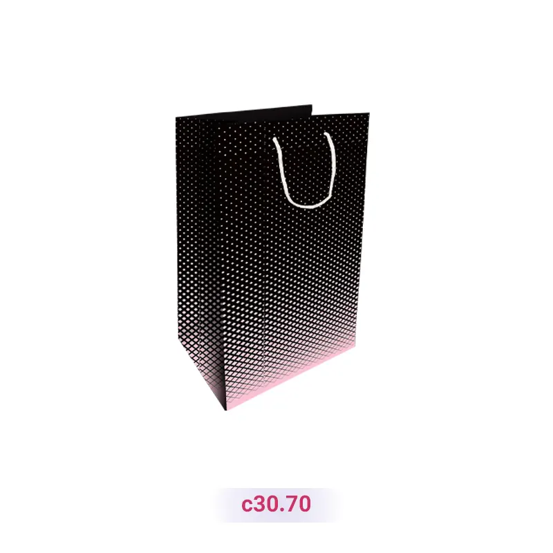 بگ هدیه طرح لوزی (سری 70) با رنگ مشکی و صورتی و سایز 18.5*26.5*40 سانتیمتر، جزو دستههای پاکت هدیه و پاکت هدیه مشکی است. این پاکت کادو گلاسه آماده، مناسب استفاده برای کیف، کفش، اسباب بازی، لباس است و شما میتوانید آن را بصورت تک و عمده سفارش دهید. بدیهی است که در سفارشات عمده، تخفیفهای ویژهای در نظر گرفته میشود. برا ی ثبت سفارش عمده، میتوانید به صفحه سفارش خرید عمده پاکت کادو مراجعه کنید.