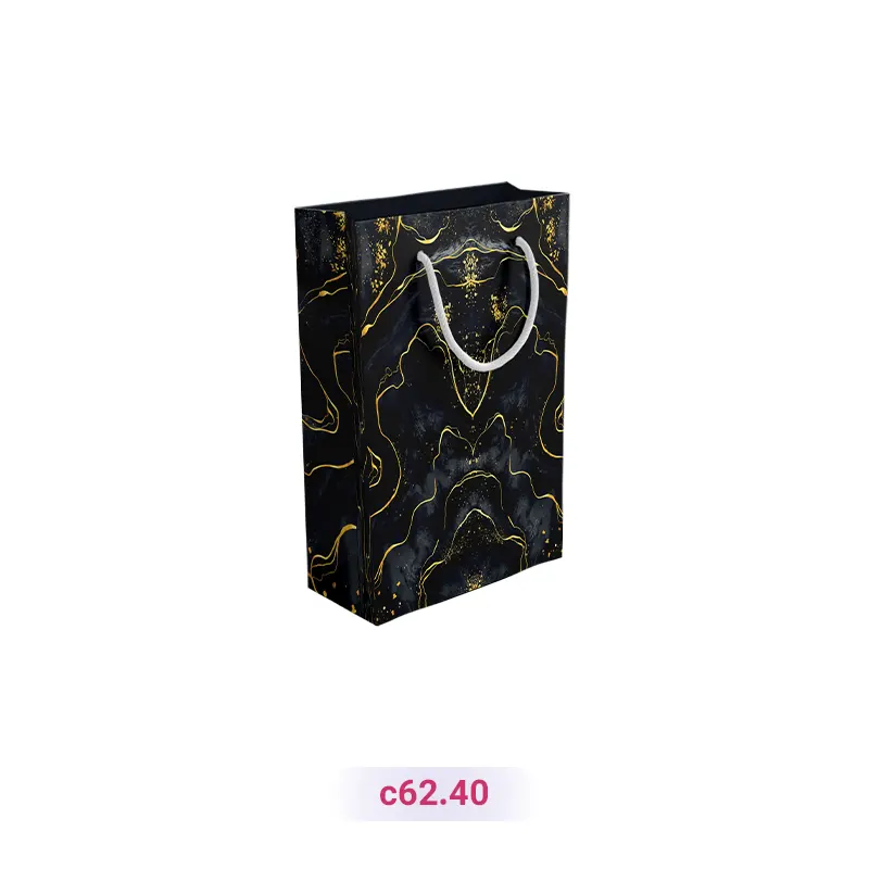 بگ هدیه طرح ماربل (سری 40) با رنگ مشکی و سایز 10*24*39 سانتی‌متر، جزو دسته‌های پاکت هدیه و پاکت هدیه مشکی است. این پاکت کادو گلاسه آماده، مناسب استفاده برای عروسک، شمع تزئینی، لباس، جعبه است و شما می‌توانید آن را بصورت تک و عمده سفارش دهید. بدیهی است که در سفارشات عمده، تخفیف‌های ویژه‌ای در نظر گرفته می‌شود. برا ی ثبت سفارش عمده، می‌توانید به صفحه سفارش خرید عمده پاکت کادو مراجعه کنید.